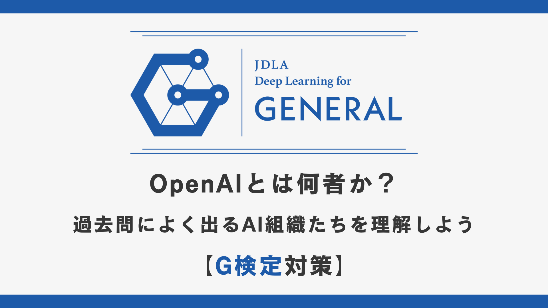 この記事では、実際のG検定の過去問を通して、OpenAIがどんな団体なのかを整理し、混同しやすい選択肢との違いもあわせて解説していく。