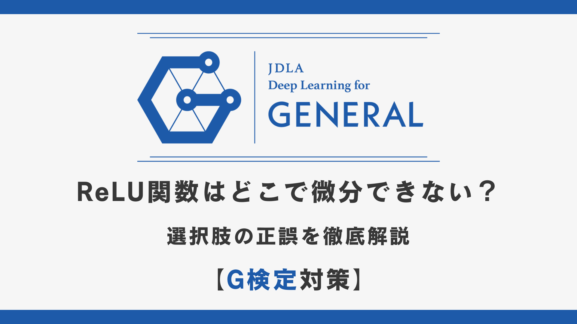 今回は、G検定で実際に出題された「ReLU関数の微分に関する問題」を取り上げ、選択肢ごとの正誤を丁寧に解説する。