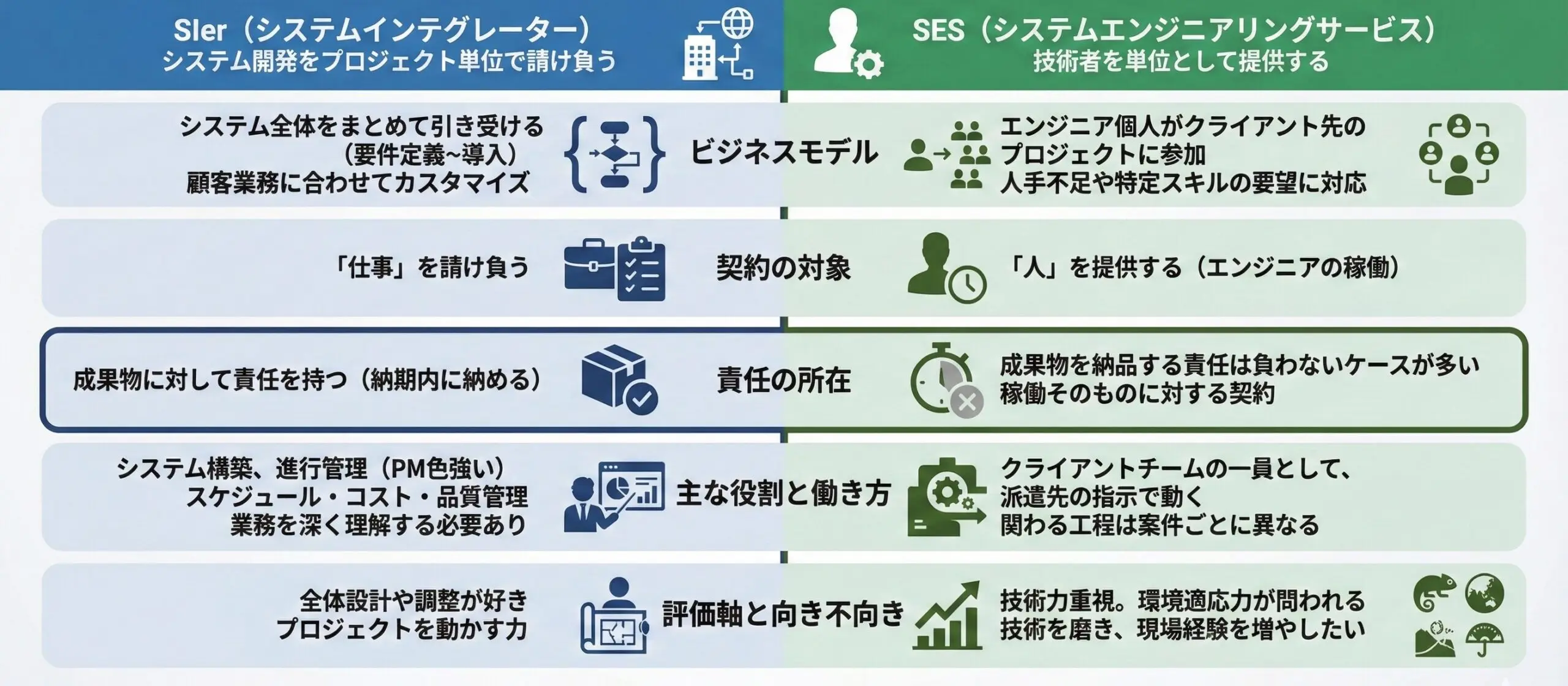 SIerとSESって、結局どっちもシステムを作る会社じゃないんですか?何が違うのやら…