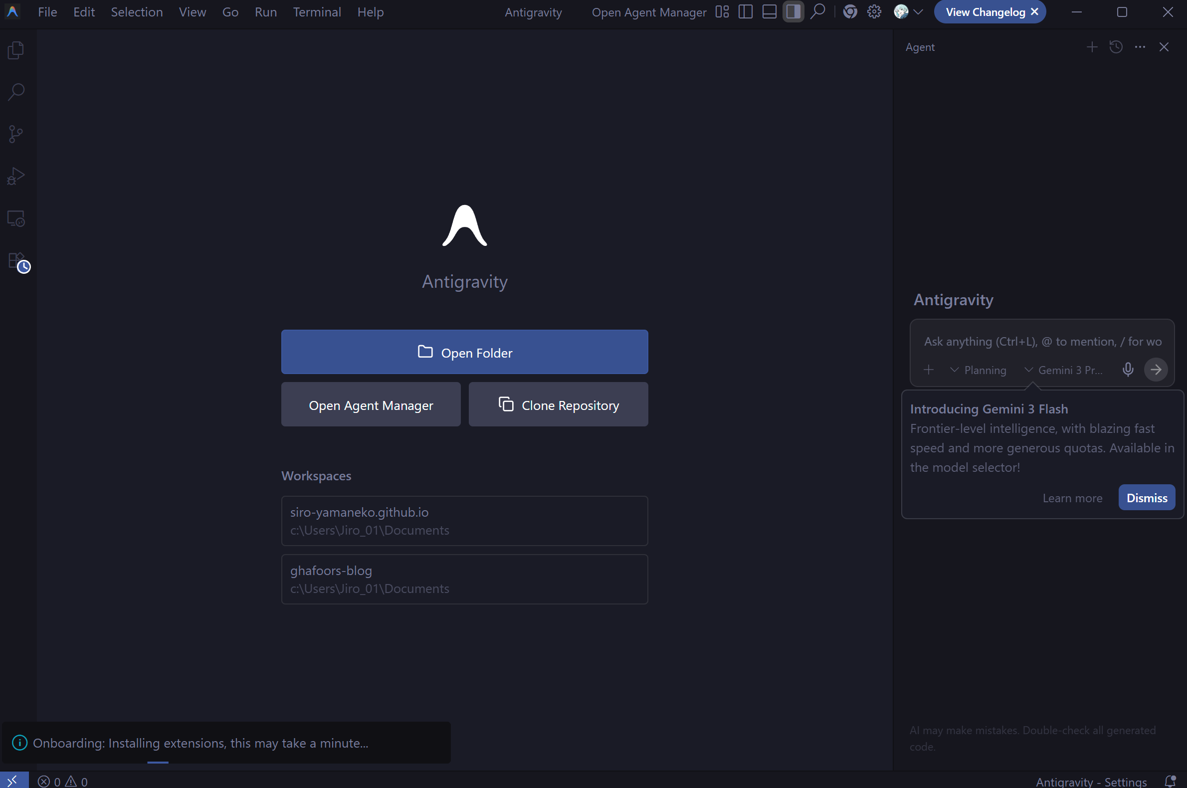 Antigravityは大きく分けて