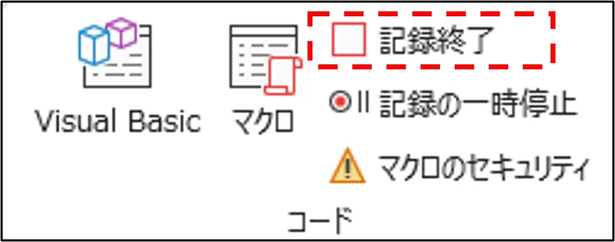 - 記録終了: 操作が終わったら「開発」タブの「記録終了」をクリックする。